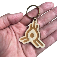 The Ascension keychain is crafted from laser-cut birch plywood, designed in the shape of the Ascension symbol. On the reverse side, you'll find a QR code that connects directly to Ascension's music on various streaming platforms. The Ascension symbol itself draws inspiration from tribal and Aztec designs, blended with a sci-fi aesthetic. Within the symbol, you might see a bird, a plane, or even a spaceship—an energy construct symbolizing ascension. This mirrors the transformative energy of the music created by Ascension.